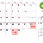 - 4月休業日のお知らせご不便をお掛けいたしますが、ご容赦くださいますようお願い申し上げます。