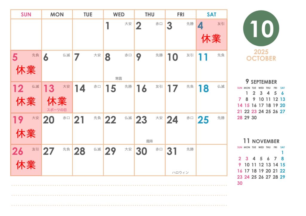 10月休業日お知らせ