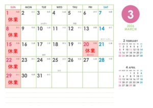 3月休業日のお知らせ